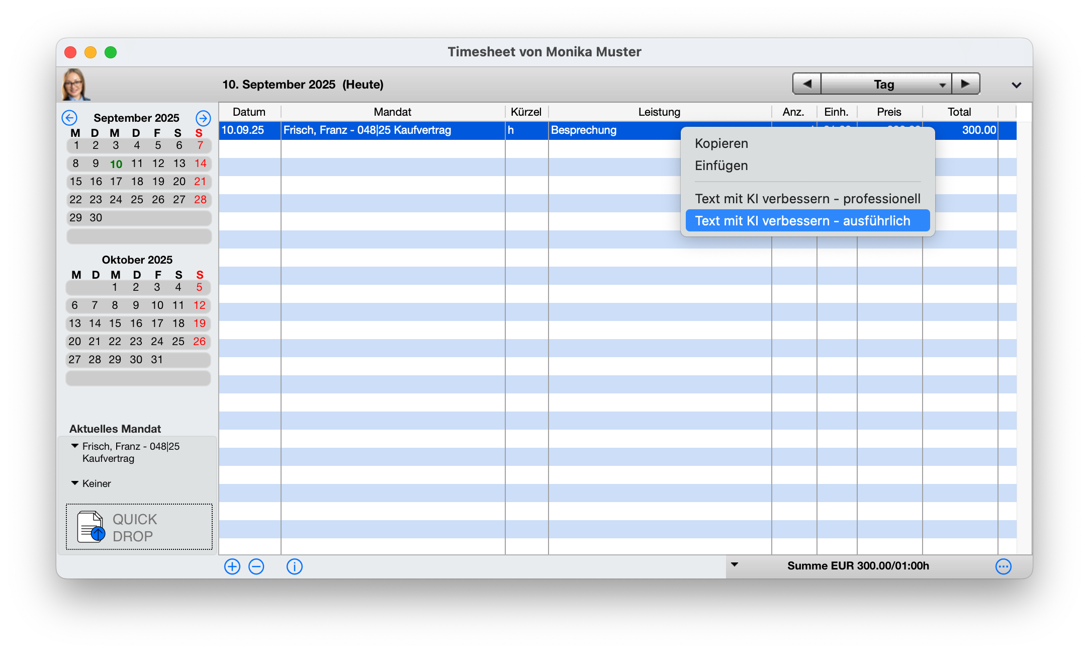 Vielleicht wurden die Leistungszeiten aber nicht einfach gekürzt, sondern durch eine Pauschale Rechnung oder RVG abgegolten. Die Anwaltssoftware timeSensor LEGAL kennt für diesen Fall den Status „anderweitig verrechnete Leistung“. Das sind Zeitleistungen, welche zwar nicht in Rechnung gestellt wurden, die aber statistisch trotzdem zu den verrechenbaren Zeiten zählen.
